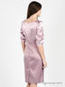 Великолепное платье из плотного, мягкого материала. Вырез горловины - каре. Застежка на спинке на молнию. Укороченные свободные рукава с манжетами. Отрезной лиф выполнен из атласной фактурной ткани и декорирован пояском с бантиком и пряжкой со стразами. Спинка дополнена шлицей. Будьте всегда в центре внимания!