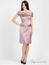 Потрясающее платье из плотной атласной ткани. Широкий округлый вырез горловины. Стояче-отложной ворот. Застежка на спинке на молнию. Талия подчеркивается широким поясом. Стильный вариант для создания женственного образа!