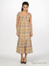 Платье свободного кроя слегка расклешенное книзу из приятной ткани. Верх присборен, застегивается на пуговицы.