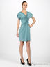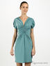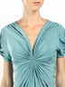 Элегантное платье приталенного силуэта из тонкой эластичной ткани, приятной на ощупь. V-образный вырез горловины присборен в красивые складки. Короткий рукав декорирован оригинальным узлом.
