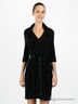 Элегантное платье из приятной ткани свободного кроя. V-образный вырез горловины. Талия подчеркнута изящным пояском-ленточкой.