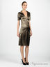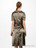 Платье приталенного кроя из атласной ткани. Отложной воротник. Короткие рукава.