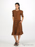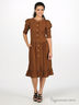 Платье приталенного кроя из тонкой воздушной ткани. Овальный вырез горловины. Рукава по локоть. Расклешенная юбка. Платье на пуговицах.