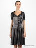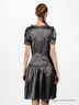 Платье приталенного кроя из атласной ткани. Отложной воротник с рюшей. Рукав-фонарик. Юбка присборена.