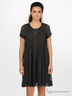 Платье свободного кроя из струящейся ткани. Круглый вырез грловины с маленьким разрезиком. Короткие рукава. Платье присборено на груди.