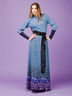 Длинное теплое платье из ткани с рисунком "камни", притягивает внимание окружающих и визуально стройнит фигуру. В комплекте широкий поясок из черного атласа не талию, чтобы подчеркнуть ее изящество.