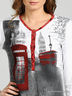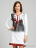 Детали: застежка на пуговицы, округлый вырез горловины на трикотажной ленте, длинный прямой рукав
