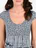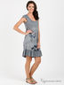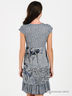 Детали: круглый вырез горловины, короткие рукава - крылышко, отрезной топ, по шву небольшая сборка, подол - рюша, стильная нетрадиционная расцветка.