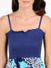Детали: топ на резинке, тонкие лямки, отрезная классическая юбка, оригинальная расцветка.