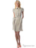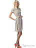Платье с коротким рукавом, рубашечный воротник, застежка на пуговицы, отрезная талия, пояс, расклешенная юбка. Модель украшена контрастными канатами.