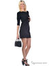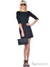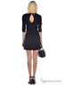 Прямое, очень лаконичное платье с укороченной длиной, рукав 3\4. Круглый маленький вырез, по спинке изделия застежка на пуговку, сзади вырез украшен симпатичной капелькой-вырезом.
