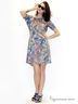 Свободное платье, приталивается модель за счет шифонового пояса, рукав 3\4 на резинке, горловина и плечевая линия платья также украшена сборкой на резинке.