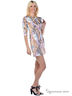 Прямое, очень лаконичное платье с укороченной длиной, рукав 3\4. Круглый маленький вырез, по спинке изделия застежка на пуговку, сзади вырез украшен симпатичной капелькой-вырезом.