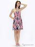 Трикотажное платье, от линии груди чуть расклешено к низу. Длина выше колена. Без верхней части топа, по лифу сбоку и от центра лифа - лямочки, которые завязываются на шее.