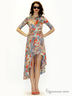 Оригинальное платье с укороченной юбкой по переду изделия и удлиненной сзади, длинный рукав. По талии пояс на пряжке.
