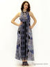 Длинное летнее платье с открытой спиной, лиф платья завязывается сзади на шее, линия талии чуть завышена.