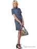 Платье с рукавом, застежка по переду, рубашечный воротник, отрезная талия, юбка платья заложена в косые встречные складки.