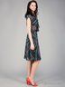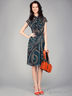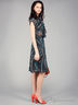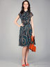 Детали: короткий рукав, отрезная, слегка расклешенная юбка, полочка декорирована жабо