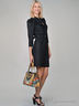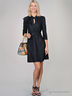 Оригинальное платье из мягкого материала. Модель приталенного силуэта. Ворот-стойка. Прямые рукава 3/4. Полочка декорирована многослойным воланом. Талия подчеркивается с помощью пояса с оборками.
