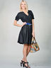 Стильное платье приталенного силуэта. V-образный вырез с запахом, короткий рукав. Отличный вариант для вечеринки.