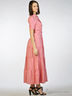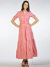 Воздушное платье приталенного силуэта. V-образный вырез горловины, отложной ворот с лацканами, кроткий рукав, застежка на пуговицы на полочке. Отличный вариант для прогулок.