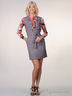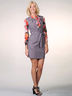 Модное платье из великолепного материала. Округлый вырез горловины с оригинальным разрезом, дополненным молнией. Отрезной лиф. На полочке расположен декоративный карман на молнии. Узкий пояс в патах подчеркивает линию талии. Два прорезных кармана.