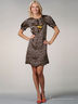 Стильное повседневное платье для модной, уверенной в себе женщины. Модель полуприталенного силуэта. Округлый вырез горловины. Короткие рукава-фонарики. Полочка декорирована оригинальным воланом. Будьте всегда в центре внимания!