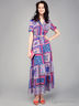 Детали: отложной воротник, короткий рукав, застежка на пуговицы, юбка декорирована пристроченными воланами.
