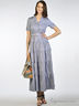 Воздушное платье приталенного силуэта. V-образный вырез горловины, отложной ворот с лацканами, кроткий рукав, застежка на пуговицы на полочке. Отличный вариант для прогулок.