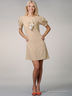 Стильное повседневное платье для модной, уверенной в себе женщины. Модель полуприталенного силуэта. Округлый вырез горловины. Короткие рукава-фонарики. Полочка декорирована оригинальным воланом. Будьте всегда в центре внимания!