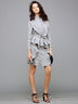 Изящное женское платье. Длина чуть выше колена, пояс по талии декорирован бантиком. Волан по полочке юбки придает стройность фигуре. Застежка на пуговице.