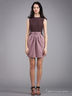 Платье без рукава, длина платья укорочена, отрезная талия. Юбка платья украшена поясом, что придает загадочность и неповторимость модели. Комбинирование тканей выгодно подчеркнет детали. Круглый глухой вырез горловины придает строгость модели.