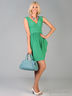 Детали: v-образный вырез горловины, отрезная юбка декорирована драпировкой по бокам