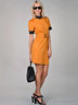 Эффектное платье-карандаш из плотной, качественной ткани. Стояче-отложной ворот. Короткие рукава-реглан с манжетами и декоративным вырезом. Ворот и манжеты выполнены из контрастной ткани. Полочка дополнена оригинальной планкой. Талия подчеркивается изящным пояском.