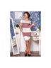 Великолепное платье с короткими рукавами и округлым вырезом горловины. Рисунок в полоску. Декорировано клеевыми камнями под агат, длина 90 см.