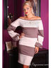 Великолепное платье с короткими рукавами и округлым вырезом горловины. Рисунок в полоску. Декорировано клеевыми камнями под агат, длина 90 см.