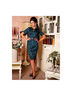 Замечательное платье с короткими рукавами и фигурным вырезом горловины. Модель оформлена оригинальным рисунком. Декорирована съемным поясом.