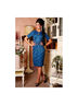 Замечательное платье с короткими рукавами и фигурным вырезом горловины. Модель оформлена оригинальным рисунком. Декорирована съемным поясом.