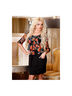 Великолепное платье с рукавами 3/4 и округлым вырезом горловины. Модель состоит из комбинации двух тканей. Вверх платья декорирован ярким принтом. Низ - в однотонном цвете. Съемный пояс, длина 95 см.