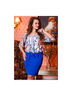 Великолепное платье с рукавами3/4 и округлым вырезом горловины. Модель состоит из комбинации двух тканей. Вверх платья декорирован ярким принтом. Низ - в однотонном цвете. Съемный пояс, длина 95 см.