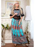Восхитительное платье длиной в пол. Модель с короткими рукавами приталенного силуэта. Изделие оформлено ярким рисунком. Прекрасный вариант для создания неподражаемого образа.