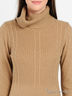 Мягкое, теплое платье прилегающего силуэта выполнено из вязаного джерси. Ворот-гольф, длинный прямой рукав и низ изделия с манжетами кашкорсе. Полочка декорирована ажурной вязкой. Великолепный вариант на все случаи жизни!