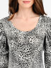 Оригинальное платье с длинными рукавами из легкой трикотажной ткани с леопардовым принтом. Приталенный силуэт. Округлый вырез горловины. Платье украшает оригинальный рукав. Стильный вариант для настоящей леди!