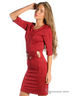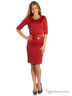 Короткое платье, рукавами длиной 3/4 и круглым вырезом горловины. Платье выполнено из жаккардового трикотажа. В комплекте идет широкий пояс с пряжкой в виде банта.