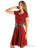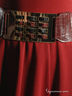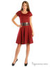 Трикотажное платье длиной по колено с короткими рукавами. Платье украшено текстильным ремнем и золотой пряжкой.