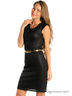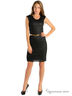 Вязаное платье-футляр на подкладке, длиной ниже колена, с короткими рукавами в форме луны и круглым вырезом горловины. Платье декорировано нитью люрекса.