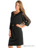 Однотонное платье прямого силуэта, с комбинированными рукавами длиной 7/8, украшенными ажурной вставкой. Платье декорировано металлической брошью в области горловины комплекте. В комплект входит тонкий пояс из "эко-кожи" в тон платья.