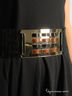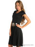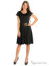 Трикотажное платье длиной по колено с короткими рукавами. Платье украшено текстильным ремнем и золотой пряжкой.