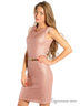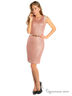 Вязаное платье-футляр на подкладке, длиной ниже колена, с короткими рукавами в форме луны и круглым вырезом горловины. Платье декорировано нитью люрекса.