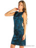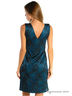Платье -футляр приталенного силуэта, длиной по колено, без рукавов с глубоким V - образным вырезом на спине. Декорировано жаккардовым принтом.